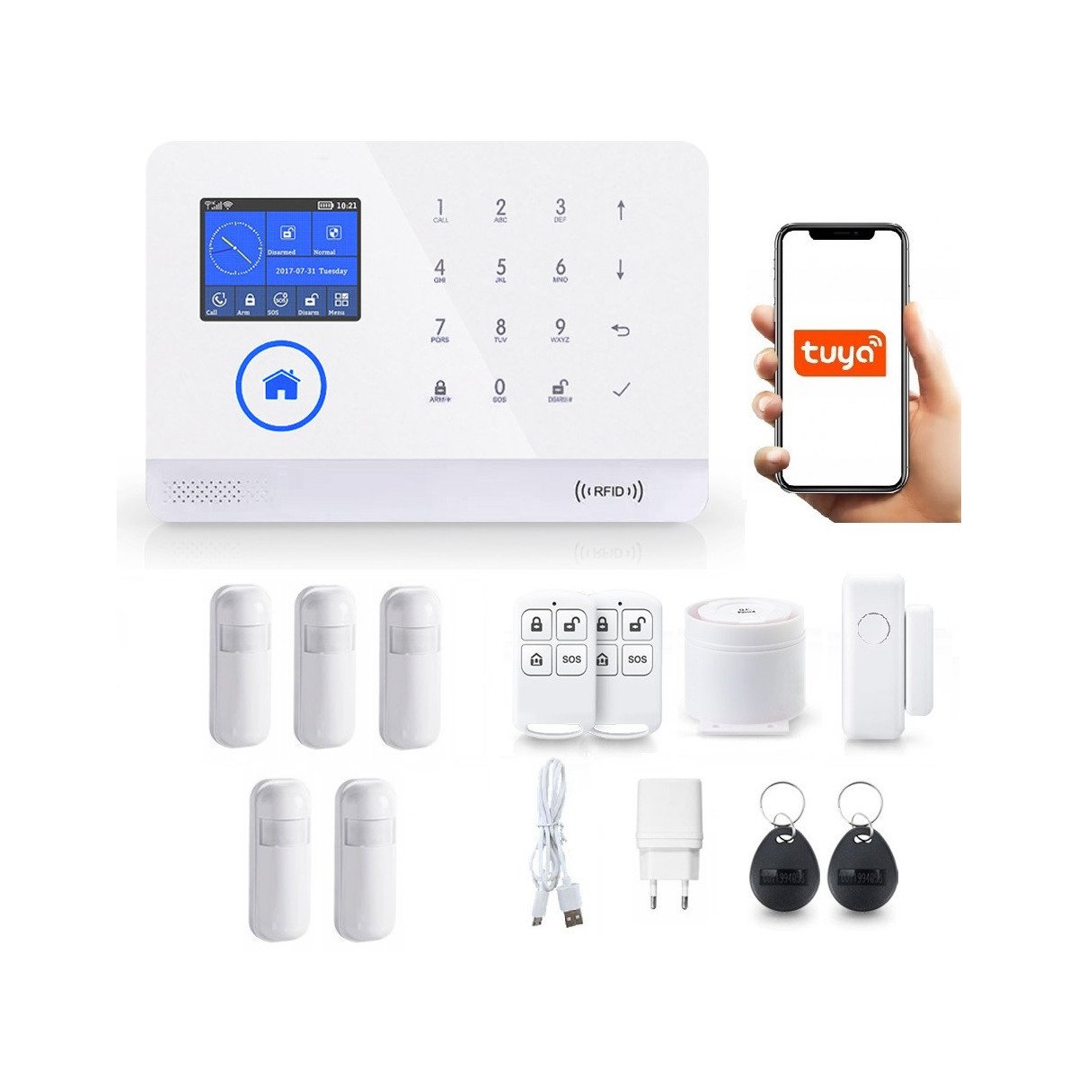 Alarm Domowy GSM WiFi Tuya WG103T 2,4" + 5xPIR