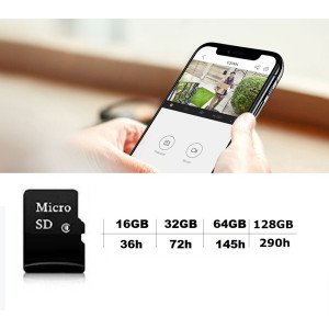 Za pomocą aplikacji możesz oglądać obraz na żywo, otrzymywać powiadomienia i przeglądać nagrania. Kamera obsługuje zapis na kartę microSD do 64GB oraz tryb nagrywania w pętli.