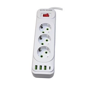 Działa jak standardowa listwa/rozgałęźnik — 3 gniazda + porty USB (w zależności od modelu) do zasilania i ładowania urządzeń.