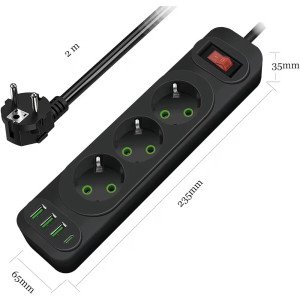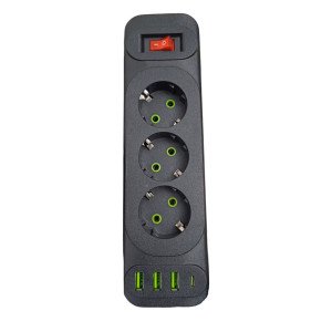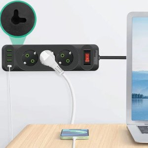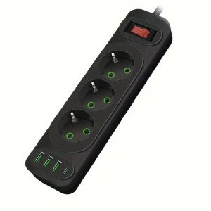 Działa jak standardowa listwa/rozgałęźnik — 3 gniazda + porty USB (w zależności od modelu) do zasilania i ładowania urządzeń.