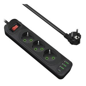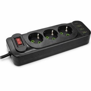 Działa jak standardowa listwa/rozgałęźnik — 3 gniazda + porty USB (w zależności od modelu) do zasilania i ładowania urządzeń.