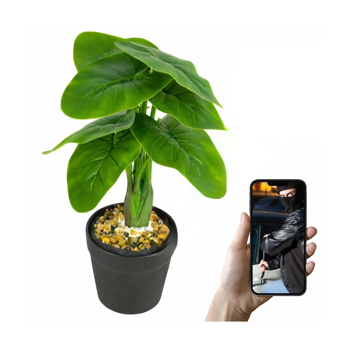 Kamera została zamaskowana jako zwykła roślina doniczkowa, dzięki czemu nie odróżnia się od typowych elementów wystroju wnętrza. Doskonale wtapia się w otoczenie i pozostaje praktycznie niewidoczna.