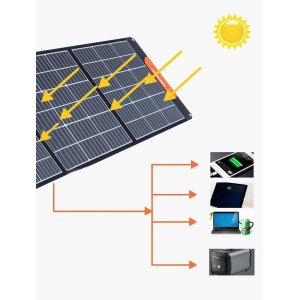 Wysokowydajny panel solarny 300W to przenośne źródło darmowej energii dla kamperów, namiotów, kempingu i podróży. Dzięki składanej konstrukcji jest wygodny w transporcie, a moc 300W zapewnia szybkie ładowanie wielu urządzeń.