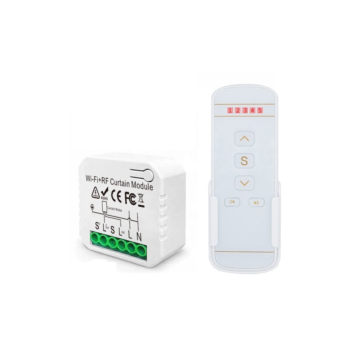 Dodaj inteligentne sterowanie do rolet i zasłon. Zestaw moduł dopuszkowy WiFi Tuya + pilot 5-kanałowy umożliwia otwieranie, zatrzymywanie i zamykanie napędów z aplikacji lub pilotem.